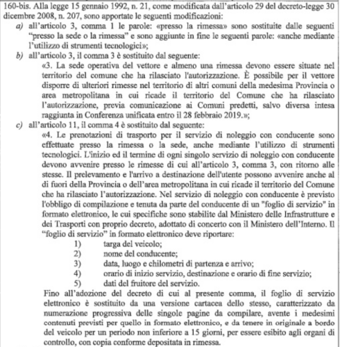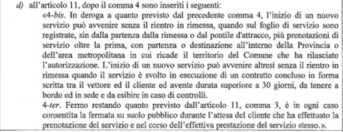 In sintesi, salta la liberalizzazione degli NCC che prevedeva la presa in carico delle chiamate attraverso le rimesse.