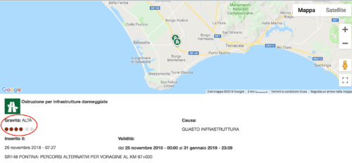 Piccola curiosità: sul sito dell’Astral, nella pagina che parla dell’incidente di ieri sulla SR148, sul fronte della gravità è stato stabilito il livello 4 su 6 possibili: