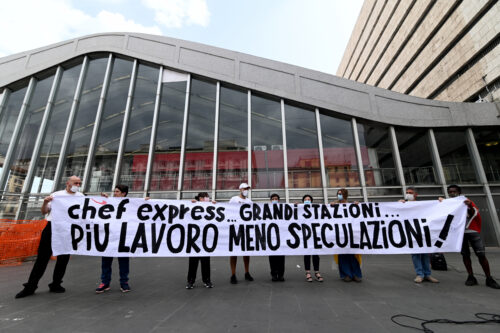 La protesta dei lavoratori di Chef Express di Roma Termini, senza occupazione da novembre scorso, non si ferma. Con lo sblocco parziale dei licenziamenti in atto e la crisi aziendale innescata da Grandi Stazioni, società che gestisce i locali commerciali delle più grandi stazioni italiane, tra cui Roma Termini, lo stato attuale è quello di 130 esuberi dichiarati con il rischio incombente dell’allontanamento definitivo dal posto di lavoro.