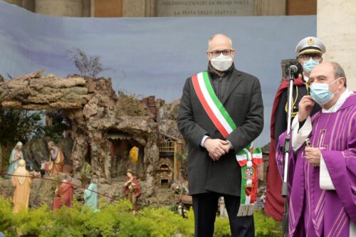 Il sindaco di Roma, Roberto Gualtieri, inaugura il tradizionale presepe natalizio in piazza del Campidoglio.