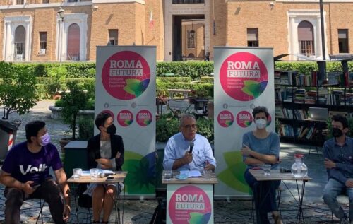 Presenti Giovanni Caudo, portavoce di Roma Futura e presidente del Municipio di Roma III-Montesacro, Marta Bonafoni, presidente di POP idee in Movimento e consigliera Regione Lazio, Annalisa Corrado, co-portavoce di Green Italia, Susanna Greco e Paolo Leccese, coordinatori cittadini Volt Roma, Ruggero Scotti, portavoce Roma Possibile. Rimettere al centro le migliori energie di Roma, trainare la Capitale verso un futuro più inclusivo e giusto che abbia come priorità la lotta alle disuguaglianze e ai cambiamenti climatici. Un’idea, concreta e innovativa, di quello che la città può e deve diventare. Questo il senso della presentazione della lista ‘Roma Futura’ a sostegno del candidato sindaco di Roma per il centrosinistra Roberto Gualtieri, che si è svolta questa mattina presso il Biblio Bar a Castel Sant’Angelo. Una lista civica ecologista, femminista ed egualitaria, le tre parole programmatiche che campeggiano nel simbolo di ‘Roma Futura’, accanto alla stella del Campidoglio, che si tinge di verde e blu a richiamare il connubio tra tutela dell’ambiente e innovazione. Lo sfondo del simbolo, invece, è rosso magenta, una sintesi di colore che richiama la sinistra e le lotte femministe. “Oggi incontriamo gli attori che costituiscono una presenza rilevante nella città e che hanno un peso enorme, ma che sono delusi dalla politica o non hanno una reale rappresentanza- dichiara in apertura Giovanni Caudo- L’idea è creare reti politiche stando dentro alle cose, collegando il locale al globale. In particolare- continua- ci concentreremo su tre questioni chiave: un nuovo modello economico, le politiche sociali e la questione ecologica. Su questi temi abbiamo previsto eventi ad hoc con i quali faremo richieste puntuali al candidato sindaco Gualtieri, perché siano presi impegni precisi. L’obiettivo è incidere sul futuro di questa città, non essere solo una delle parti in causa”. “Io qui rappresento POP, un’associazione giovanissima che si è mossa proprio sui passi rilanciati da Giovanni, nell’incontro fra amministratrici e amministratori e associazioni, mondo del sociale, del femminismo, dell’ecologia e dei beni comuni- aggiunge Marta Bonafoni- Questa città non va liberata, va restituita alla sua bellezza, alle sue cittadine e ai suoi cittadini, alle sue energie sociali. Roma Futura sarà la lista che terrà insieme una visione di città con la felicità possibile di chi la città la vive e la attraversa: i nuovi cittadini, transitanti, migranti, i senza dimora ai quali dobbiamo dare un tetto, le donne che dovranno girare in città sicure non perché ci sono le telecamere, ma perché la vita di questa città le accoglie nel suo flusso vitale. Tutto questo sposando il tema della lotta ai cambiamenti climatici”.