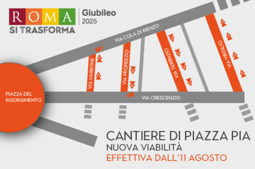 In vista del definitivo allestimento del cantiere di piazza Pia, a partire da venerdì 11 agosto ci saranno ulteriori cambiamenti alla viabilità del quadrante interessato dai lavori.