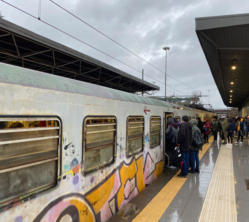 Non va meglio, come immaginabile, sulle ferrovie ex-concesse di Roma e del Lazio, quella Roma-Lido, Roma-Civita Castellana-Viterbo e Roma-Giardinetti che hanno problemi nel quotidiano, figurarsi in giorni di crisi sistemica del trasporto capitolino. Una pendolare molto attiva, per esempio, segnala le soppressioni nell’ora di punta, con le scuole aperte, allegando foto di passeggeri stipati su treni e banchine: