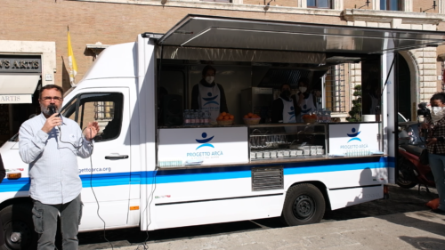 Il Presidente della “Fondazione Arca”, Alberto Sinigallia, al termine della presentazione ai microfoni di Radiocolonna.it ha spiegato che la ‘’Cucina Mobile’’ si rifà ad un’idea nata a marzo 2020 quando improvvisamente hanno chiuso le mense e le docce rivolte ai più poveri a causa della pandemia. ‘’ Anche i volontari – ha detto – non potevano più svolgere le consuete attività, e i senza fissa dimora rischiavano di rimanere ancora più soli, allora abbiamo deciso di mettere le nostre cucine su ruote in strada per non interrompere il servizio, e anzi ci siamo avvicinati a queste persone che potevano così anche scegliere il loro pasto”.