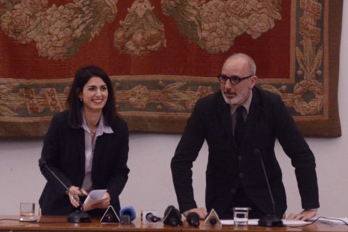 Virginia Raggi e il neo assessore Luca Montuori (Foto Omniroma)