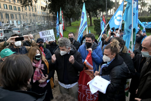 Lavoratori e sindacati del settore alberghiero hanno protestato oggi a Villa Borghese. Tra le bandiere di Filcams Cgil Roma Lazio, Fisascat Cisl Roma Capitale e Rieti, Uiltucs Roma e Lazio, la protesta ha rivendicato il blocco dei 250 licenziamenti previsti per i dipendenti di tre storici alberghi di Roma: Sheraton, Majestic, Cicerone. I lavoratori coinvolti sono in maggioranza sui cinquant’anni e appartengono a famiglie monoreddito. La fetta più ampia di dipendenti a rischio riguarda l’hotel Sheraton di Roma dove sono 164 i lavoratori messi in mobilità a partire da settembre 2021. “Dopo 39 anni che lavoravamo lì non ci saremmo mai aspettati una situazione del genere”, ha raccontato un dipendente dello Sheraton. “Denunciamo il fatto che si usi la pandemia per licenziare e disfarsi di tutti i contratti a tempo indeterminato. La pandemia va trattata sui tavoli e non a colpi di licenziamenti. Chiediamo che venga ristabilito il blocco dei licenziamenti”, ha aggiunto.