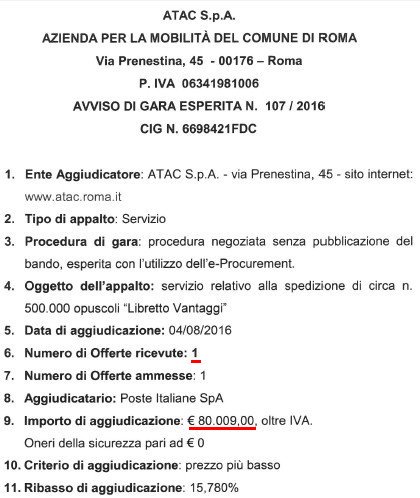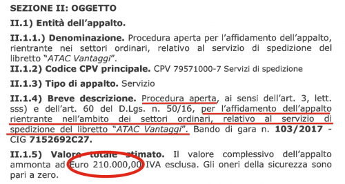 Il blogger Mercurio Viaggiatore ha scovato un bando di gara (il 103 del 2017) per il servizio di “spedizione di circa n° 500.000 opuscoli “Libretto Vantaggi”.