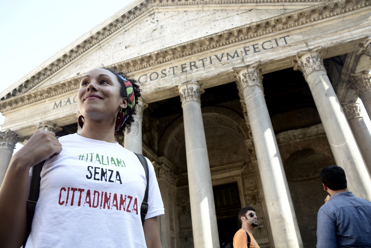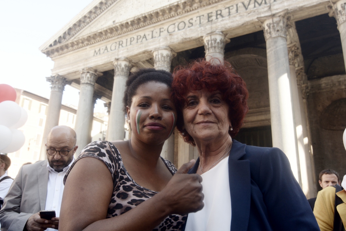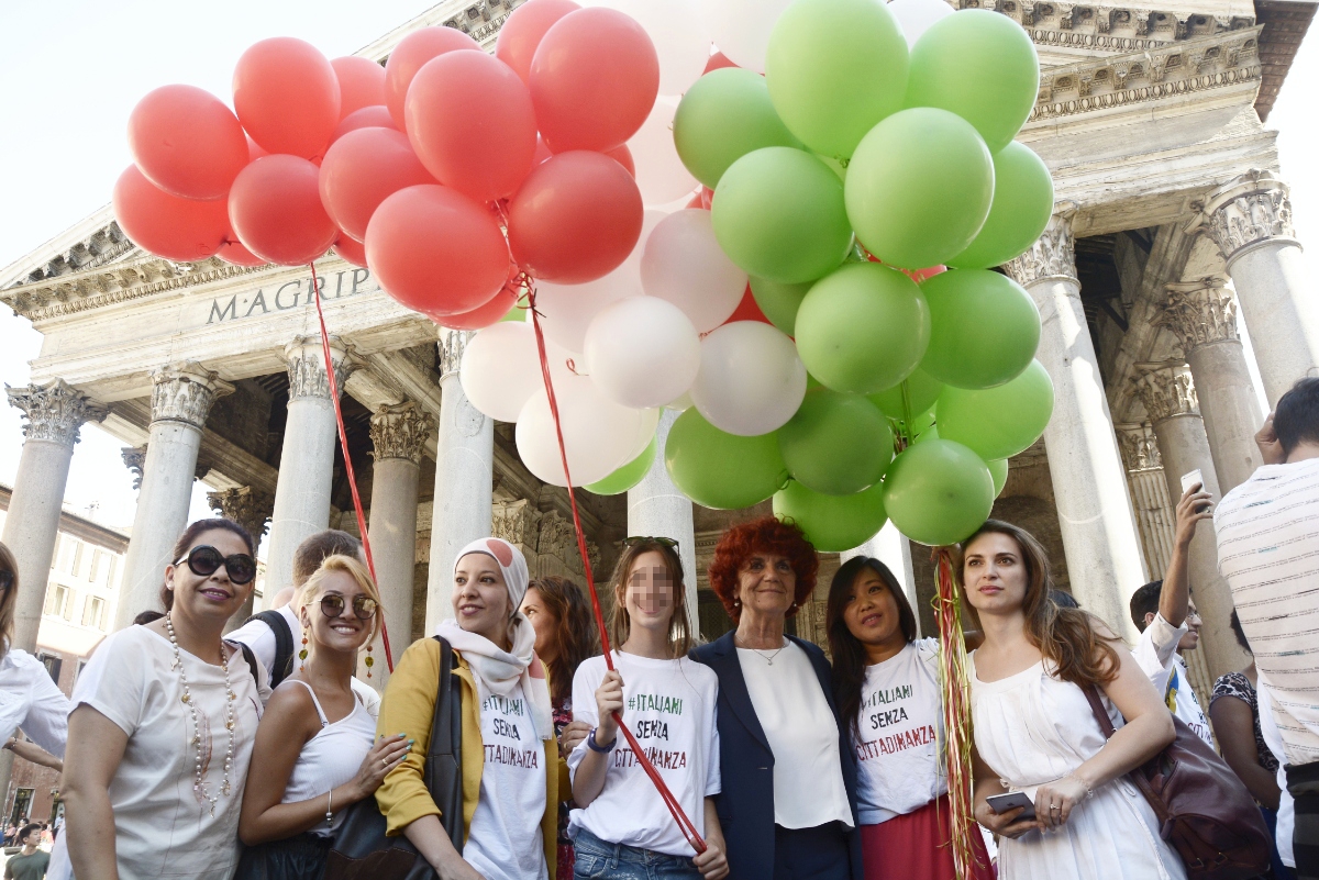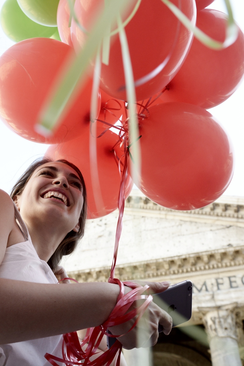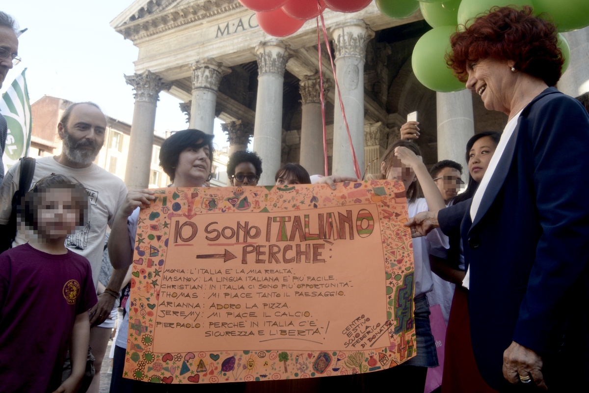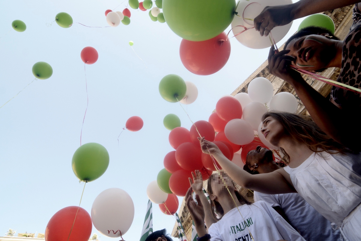 Un centinaio di palloncini bianchi rossi e verdi sono stati fatti volare ieri pomeriggio al Pantheon durante il flash mob “italiani senza cittadinanza”. Il ministro dell’Istruzione Valeria Fedeli ha partecipato al flash mob in favore della legge sullo Ius soli durante il quale sono stati esposti cartelli su cui erano indicati i motivi del “perché io sono italiano”.
