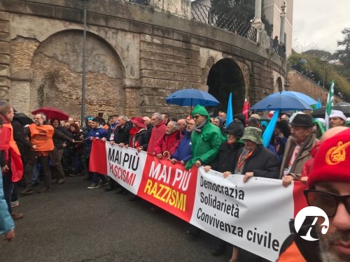 In 100 mila, secondo gli organizzatori, a Roma hanno partecipato alla manifestazione “Mai più fascismi”, lanciata da 23 organizzazioni sociali, sindacali e politiche, a partire dall’Anpi, Associazione nazionale partigiani, custode della memoria della Resistenza. A lanciare l’appello originario Acli – Aned – Anpi – Anppia – Arci – Ars – Articolo 21 – Cgil – Cisl – Comitati Dossetti – Coordinamento Democrazia Costituzionale – Fiap – Fivl – Istituto Alcide Cervi – L’altra Europa Con Tsipras – Libera – Liberi E Uguali – Libertà E Giustizia – Pci – Pd – Prc – Uil – Uisp.