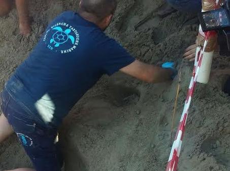Nella mattinata il personale della Guardia Costiera presidiava il sito e insieme al biologo ha effettuato i primi rilevamenti e le prime attività di studio. Nel frattempo veniva contattata la stazione zoologica Anton Dohrn di Napoli (svolge ricerca avanzata nell’ambito della biologia ed evoluzione degli organismi marini). Nel primo pomeriggio ha raggiunto il sito un ricercatore della stazione zoologica e, con l’ausilio degli uomini della Capitaneria di porto e del biologo di Tartalazio, effettuava la ricerca del punto esatto di nidificazione.