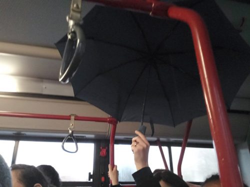 A darne conto è il tweet di un’utente, Katiuscia Eroe, che testimonia l’episodio grottesco con l’acqua in entrata e i passeggeri costretti ad aprire l’ombrello come se ci si trovasse all’aria aperta.