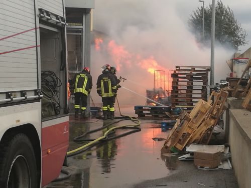 Le fiamme hanno immediatamente avvolto diversi bancali in legno presenti, oltre a parte del materiale accatastato, principalmente composto da carta, legno e plastica. Il vento, abbastanza forte in quel momento, ha fatto il resto e in pochi secondi le fiamme si sono alzate di circa 5 metri andando a minacciare il confinante campo di calcio – fortunatamente a quell’ora vuoto – e sopratutto un paio di villette poste a pochi metri, dove all’interno le famiglie erano sedute a pranzo”. Così in una nota la polizia locale di Ciampino.