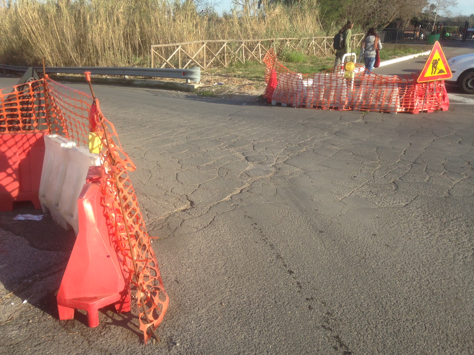 Oggi i lavori bloccano simbolicamente la pista, costringendo i ciclisti ad attraversare il punto maledetto senza l’ausilio di alcun tipo di segnaletica.