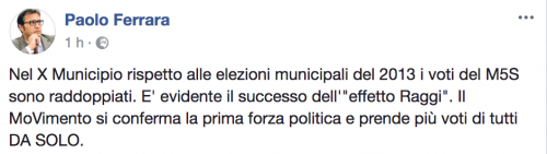 Nella girandola dei dati post elettorali può capitare di perdere di vista alcuni numeri, di ingigantirne altri e di vedere il bicchiere mezzo pieno o quello mezzo vuoto. È successo puntualmente anche a Ostia, dove il Movimento Cinque Stelle – al ballottaggio – se la vedrà con il centrodestra guidato da Monica Picca. Oltre al dato impressionante dell’astensionismo – nel 2013 sul litorale hanno disertato le urne il 48% dei votanti, nel 2017 il 64% – risulta vincente anche il ruolo delle fake news fatte uscire nel giorno successivo. Tra queste spicca la dichiarazione del capogruppo in Campidoglio del Movimento Cinque Stelle, Paolo Ferrara. Uomo forte in Aula Giulio Cesare, Ferrara su Facebook ha dichiarato che “rispetto alle elezioni del 2013, il movimento ha raddoppiato i suoi voti”: