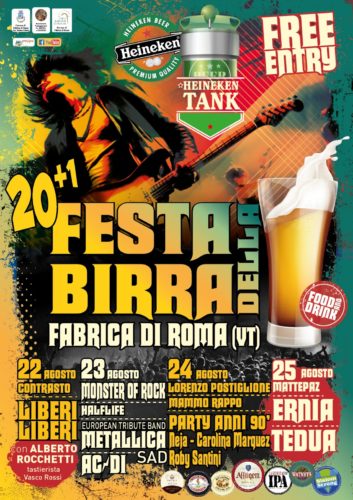 Per l’edizione 20+1 della manifestazione più famosa della Tuscia, che si terrà dal 22 al 25 agosto negli ampi spazi in località Le Vallette, è stato ripristinato l’ingresso libero a tutti gli eventi oltre ai consueti fiumi di birra ed ottima musica.