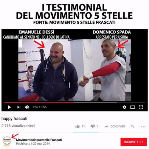 È stato il consigliere regionale del Pd Eugenio Patanè a scovare un video postato dai pentastellati di Frascati che ritrae il fedelissimo della Lombardi, Emanuele Dessì, candidato grillino nel collegio senatoriale di Latina, con Domenico Spada detto "il Vulcano"