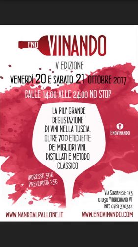 L’appuntamento con Vinando è venerdì 20 e sabato 21 ottobre, dalle 14 alle 24 no-stop presso il ristorante Da Nando a Vitorchiano.