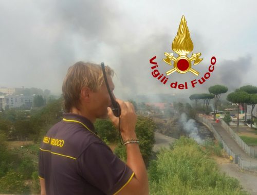 Sono circa cento gli interveniti svolti dalle 8 alle 16 da squadre del Comando di Roma e Provincia dei vigili del fuoco. Di questi il 50% ha riguardato incendi a sterpaglie. Al momento gli incendi di sterpaglia più importanti che coinvolgono una vasta zona di fitta vegetazione e impervia con capannoni, sono nel Comune di Roma, in Via di Pietralata incrocio Via delle Messi d’Oro, sul posto quattro Squadre, due autobotti, il personale Dos (Direttori delle Opere di Spegnimento) per il coordinamento dei mezzi aerei, moduli della Protezione Civile e il Funzionario di Servizio, in Via Attilio Benigni 100, sul posto una Squadra vigili del fuoco, due Autobotti, il Capo Turno Provinciale e moduli della Protezione Civile, nel Comune di Palombara Sabina in SP 35d Strada della Neve, km 6,200, sul posto due Squadre, un’autobotte e DOS (Direttori delle Opere di Spegnimento).