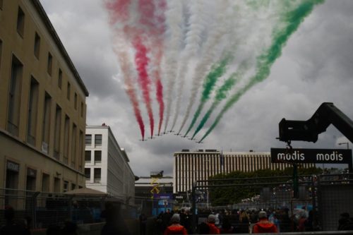 Le Frecce tricolori si esibiscono sul circuito