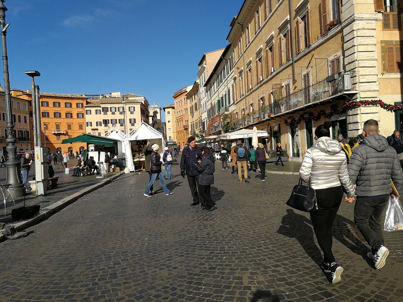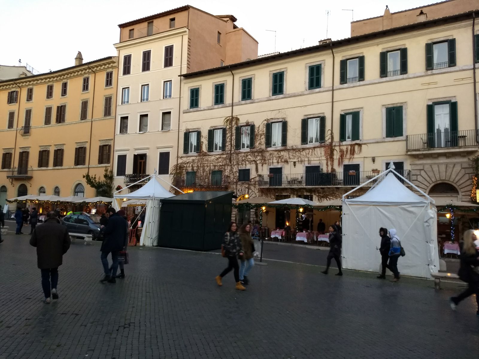 Desolazione è il termine che potrebbe riassumere – per ora – la festa della Befana di Piazza Navona. Un concetto che sembra assurdo da associare a una delle piazze più belle del mondo, capolavoro barocco inciso nel marmo da Gian Lorenzo Bernini. Eppure l’idea di desolazione è la prima a venire in mente guardando la piazza spoglia, priva di colori, con i controlli in entrata nei giorni precedenti alla vigilia natalizia. Un quadro a tinte fosche che ha varie cause e parecchi responsabili, in primis nell’idea stessa di una festa natalizia anonima e senz’anima che non dà nulla alla città se non aspre polemiche politiche che si verificano ogni anno, puntualmente, sul dominio dei Tredicine nell’ambito delle attività commerciali. In secondo luogo la sicurezza, con le blindature anti-terrorismo (in Piazza Navona si entra a numero chiuso con l’eventualità anche di essere controllati con il metal detector) che per forza di cose stroncano lo spirito natalizio e ricordano a romani e turisti come i mercati di Natale rappresentino obiettivi sensibili per folli e lupi solitari. In terzo luogo, dulcis in fundo, la disorganizzazione. La piazza si presenta vuota sia di visitatori che di banchi, con il Comune di Roma che ha intenzione di mettere a disposizione la piazza anche ad attività culturali, per il momento assenti a vantaggio di tiri al bersaglio kitsch e torroni surgelati esposti sulle bancarelle gastronomiche. In attesa di vedere come andrà il secondo tentativo di inserire attività socio-educative all’interno della festa natalizia (il primo era fallito con un bando andato deserto) resta il grande interrogativo che si stanno ponendo molti romani in questi giorni: ha senso tutto questo? È lecito infatti domandarsi quale sia la ragione di che ha spinto a dis-organizzare una festa che riesce nell’intento di scontentare tutti: i cittadini per l’offerta scadente, gli operatori per l’afflusso modesto determinato dal numero chiuso e i turisti, che invece di godersi la piazza nelle sue geometrie e nei suo fregi è costretta a vedere la Fontana del Nettuno circondata da lupini e mandorle tostate.