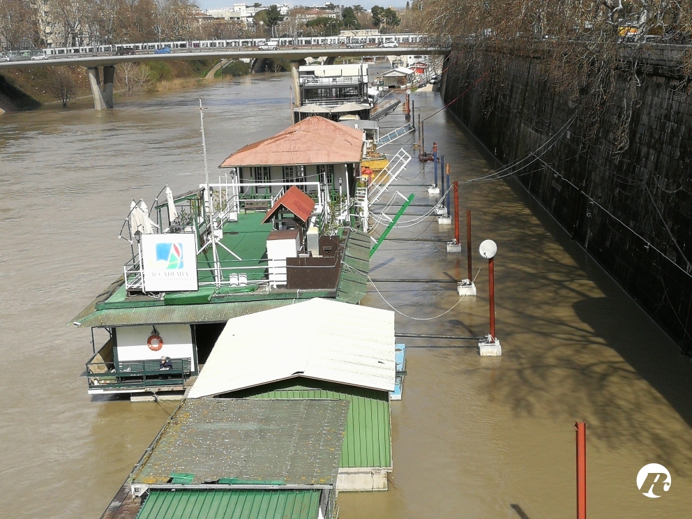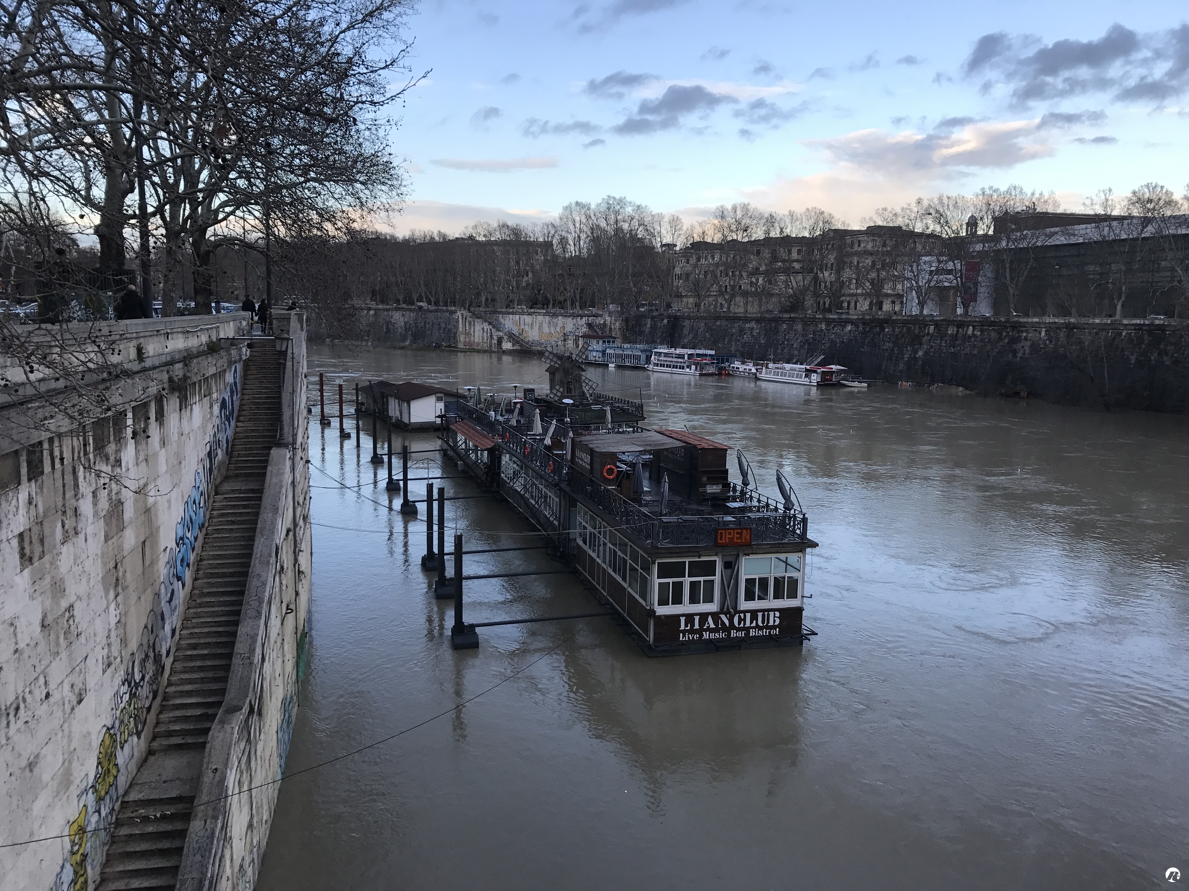 Per quel che riguarda la Capitale, la situazione non è, al momento, drammatica ma è sicuramente border line. Il Tevere aumenta di livello quasi a vista d’occhio. Comincia a coprire le scalette che vanno alle banchine, le bici dimenticate, i murales (?) e qualche auto distratta. Non fa ancora paura il Fiume ma, comunque rende quasi impossibile l’accesso ai barconi e costringe i “runners” a cambiare drasticamente percorso.