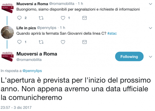 Le uniche tracce le troviamo nelle risposte social dell’agenzia Roma Servizi per la Mobilità, la partecipata romana che pianifica e supervisiona la mobilità pubblica e privata.