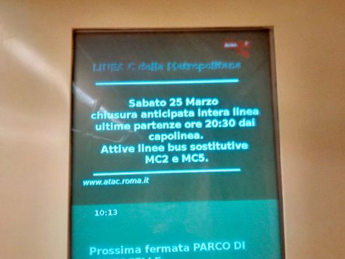 Un lavoro che imporrà lo stop della circolazione a partire dalle 20,30 di sabato sino a fine servizio, come annunciato dai tabelloni luminosi presenti nelle stazioni della Linea C.