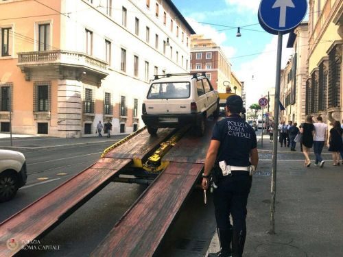 Circolava con un veicolo veicolo privo di assicurazione, con ben due sequestri alle spalle e un numero impressionante di verbali da pagare: nonostante questo circolava tranquillamente nel centro di Roma come niente fosse. Protagonista un uomo del reatino residente a Roma, fermato in via delle Botteghe Oscure da una pattuglia della Polizia Locale in servizio “Street Control”: insospettiti dalle condizioni di una vecchia utilitaria parcheggiata in divieto, gli agenti, appartenenti al GPIT, si sono fermati per accertare la situazione.