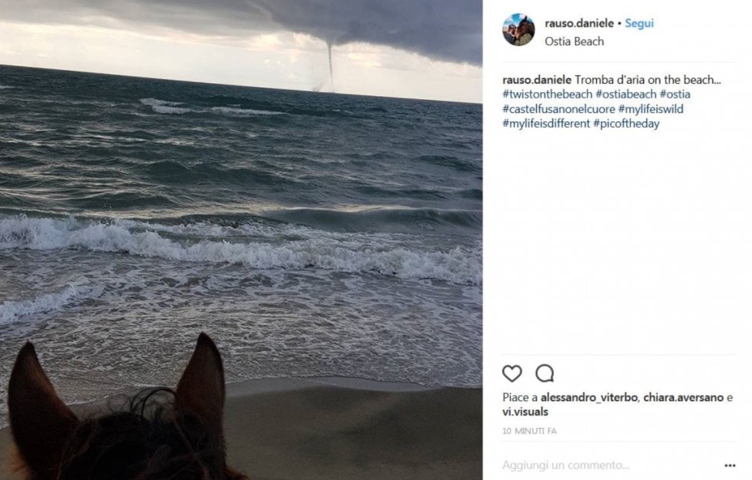 Secondo la Protezione Civile del Campidoglio, l’evento atmosferico è stato localizzato in lontananza in mare e non risultano nè chiamate per richieste di intervento nè danni a cose o persone.