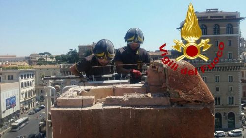 I Vigili del Fuoco, intervenuti con una squadra e un’autoscala, hanno provveduto a rimuovere un elemento della merlatura