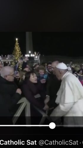 Ad un certo punto e’ stato anche malamente strattonato da una fedele e il Papa si e’ difeso ritraendo decisamente la mano e cercando di allentare la presa della pellegrina.