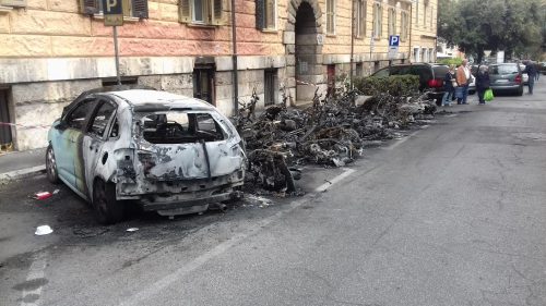 Fiamme sono divampate la scorsa notte tra via Agri e via Adige. A quanto si è appreso, nel rogo, divampato poco dopo le 3, sono bruciati 20 motorini e un’autovettura mentre altre cinque sono andate parzialmente distrutte. Rimasti danneggiati dall’incendio anche un portone condominiale e la serranda di un’attività commerciale. Sul posto sono intervenute due squadre dei vigili del fuoco, un’autobotte e i carabinieri della stazione Roma Salaria. I pompieri hanno spento l’incendio che si era sviluppato lungo la via evitando il coinvolgimento di altri mezzi. L’intervento è terminato intorno alle quattro. Indagini sono in corso per verificare le cause dell’incendio.