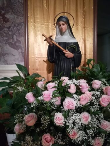Per l’occasione da Tropea sono state inviate a Roma da Tropea in provincia di Vibo Valentia, e da Cittanova in provincia di Reggio Calabria 500 rose. Proprio quel fiore che sfoggia tutta la sua bellezza proprio a maggio è infatti il simbolo della santa Beatificata da papa Urbano VIII nel 1628, fu proclamata santa da papa Leone XIII nel 1900.