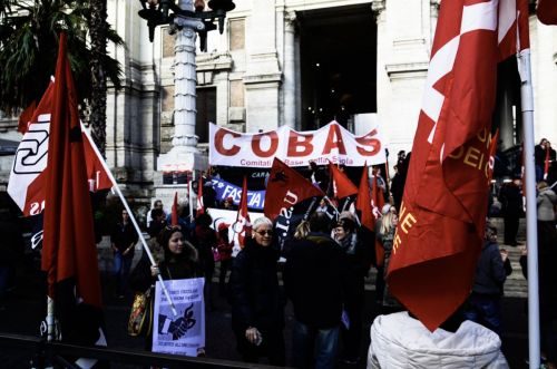 “È inspiegabile il perché non ci hanno fatto passare – commenta Piero Bernocchi, portavoce dei Cobas – Questa modalità di corteo e cioè prendere la piazza qui e prenderla a Parlamento e poi andare in corteo la facciamo da anni. E lo abbiamo fatto con lo stesso personale di polizia delle altre volte. Quindi, non capisco perché adesso abbiano deciso di imporci un meccanismo umiliante, ovvero quello di andare a Montecitorio sciolti e dispersiva senza nessun simbolo, non lo capisco. Noi ci rifiutiamo di andare al corteo in maniera sciolta”.