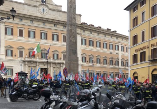 Vigili del Fuoco sul piede di guerra. Cgil, Cisl e Uil del Settore hanno scioperato oggi e organizzato, in mattinata, una manifestazione nazionale a Roma presso Piazza Montecitorio.