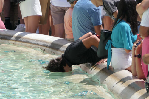 Nel centro di Roma, cittadini e turisti si gettano su fontane e fontanelle per cercare un po’ di sollievo, e cercano di ripararsi con degli ombrelli. Ma spesso questo non basta a fermare il caldo che, superato un certo livello, può causare anche gravi ripercussioni sul corpo umano, come denunciato dalla Società italiana di medicina ambientale. In particolare, “temperature eccessivamente elevate possono provocare disturbi lievi come crampi, svenimenti, edemi, ma anche problemi gravi, dalla congestione alla disidratazione, aggravando le condizioni di salute di persone con patologie croniche preesistenti”, ha dichiarato il presidente della Sima, Alessandro Miani.