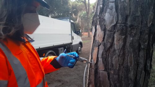 Primi "vaccini" a 450 alberi della pineta cara a Federico Fellini a rischio attacco da parte della Cocciniglia Tartaruga