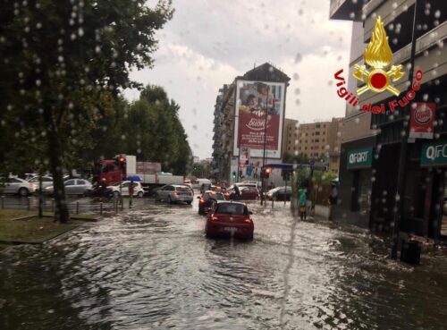 Nella foto gli interventi dei vigili del fuoco nelle zone di Milano maggiormente colpite dal nubifragio. (Foto: comando provinciale Vigili del Fuoco Milano).