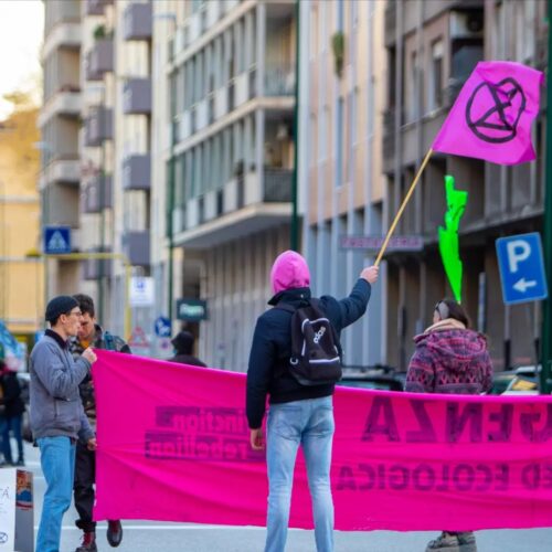 Bloccate e portate in commissariato quattro persone appartenenti all’organizzazione Extinction Rebellion trovate a imbrattare con vernice verde la recinzione esterna del palazzo dell’Eni, in piazzale Enrico Mattei a Roma. Indagini in corso della polizia.