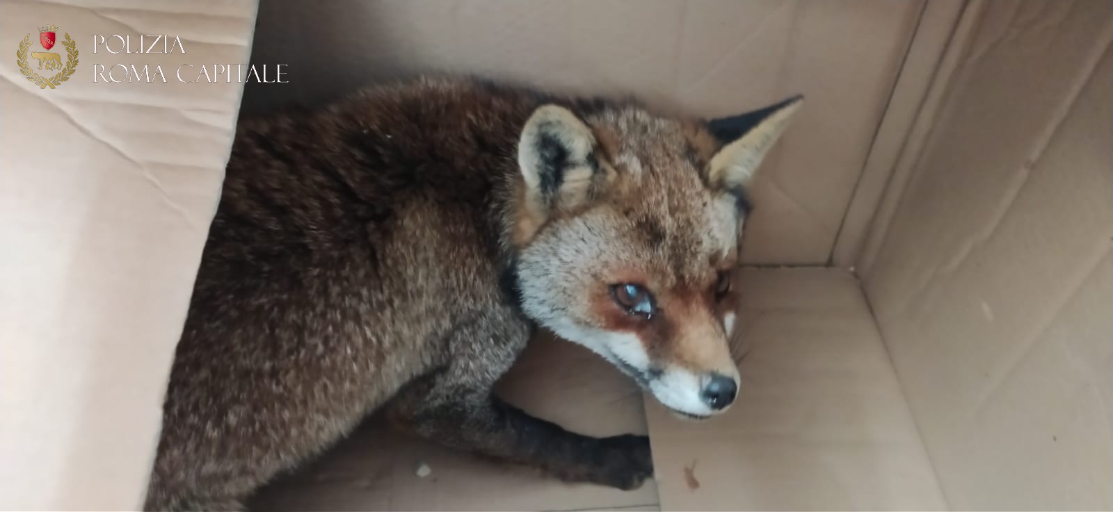 Si aggirava barcollante nell’area verde del Casino del Bel Respiro dentro Villa Doria Pamphilj, la volpe salvata dal Reparto Tutela Ambiente del XII Gruppo Monteverde della Polizia locale di Roma Capitale.