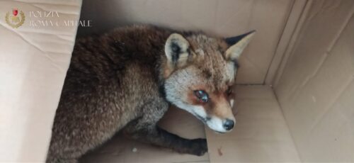 La volpe salvata dagli agenti della Polizia locale di Roma Capitale