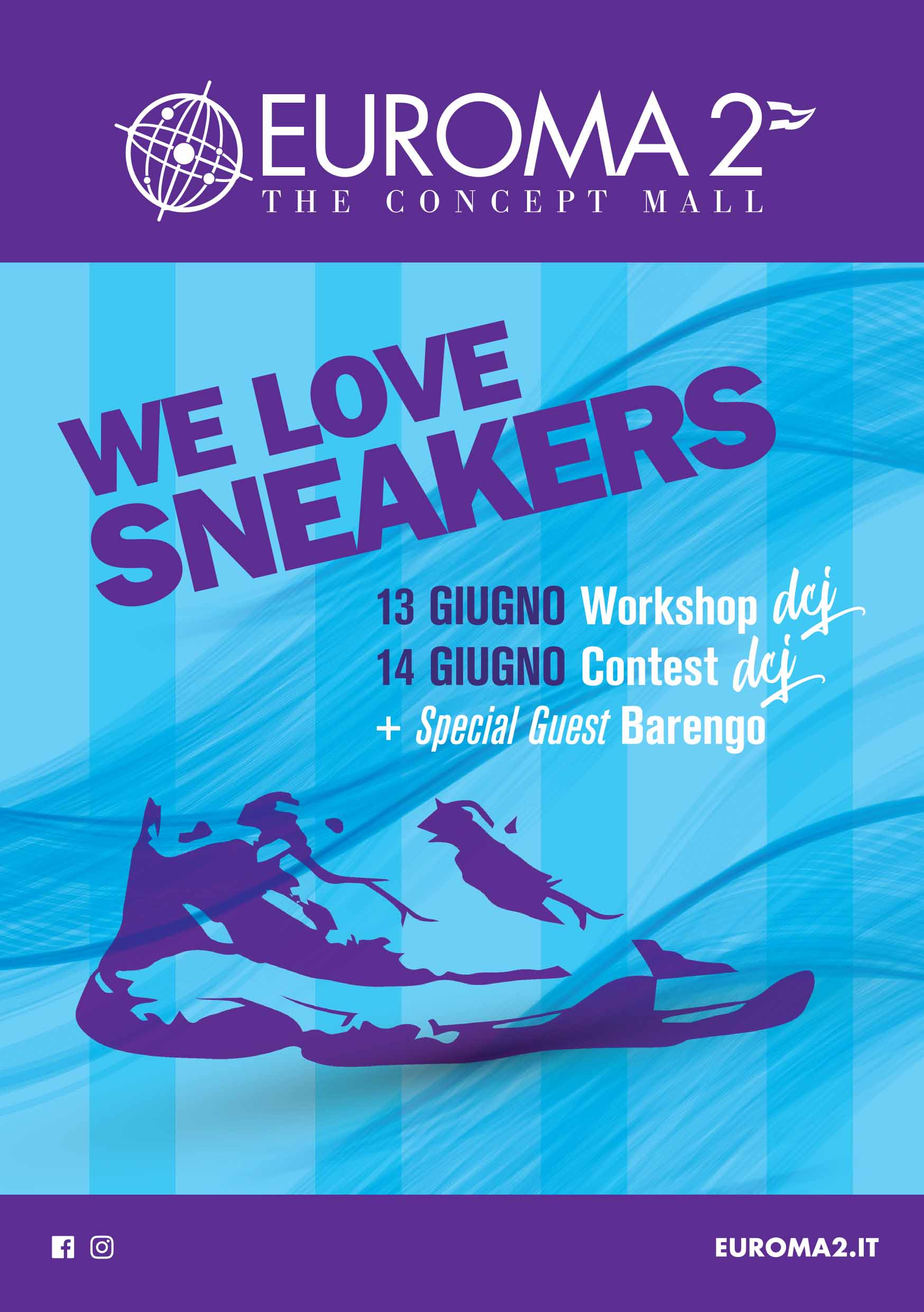 Il 13 e 14 giugno Euroma2 si trasforma per due giorni in un grande laboratorio all’insegna della creatività con l’evento “WE LOVE SNEAKERS” dedicato agli appassionati dell’universo sneakers, una moda che spopola tra i giovani e non solo.