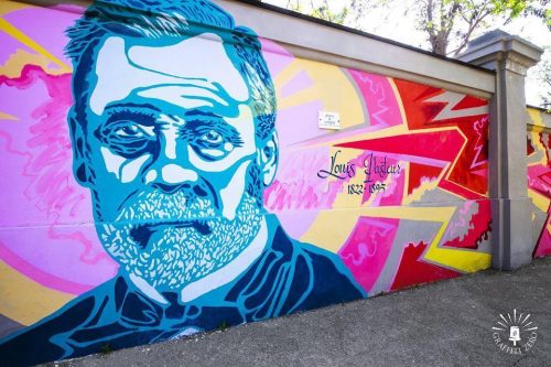 Il volto dello scienziato Louis Pasteur (Foto dalla Pagina Faceook "Graffiti Zero")