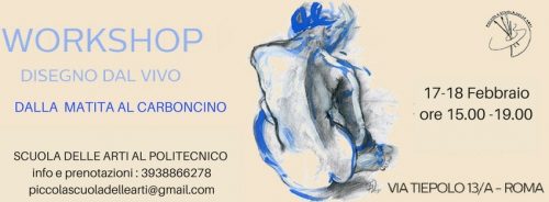 Si tiene sabato 17 e domenica 18 febbraio dalle ore 15.00 alle ore 19.00, presso la Scuola delle Arti al Politecnico (via Tiepolo 13/a) nel quartiere Flaminio a Roma, il workshop di “Disegno dal vero con modella”, tenuto dalla pittrice e docente della Scuola, Alessandra Silenzi. Sabato 17 si disegna la modella con matita su fogli A3 e, per chi voglia proseguire, si riprende disegnando la modella domenica 18 febbraio su grande formato al carboncino.