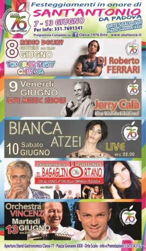 Per celebrare il santo patrono S.Antonio, ben una settimana di appuntamenti, con un cartellone variegato e ricco di iniziative per ogni età a Orte Scalo