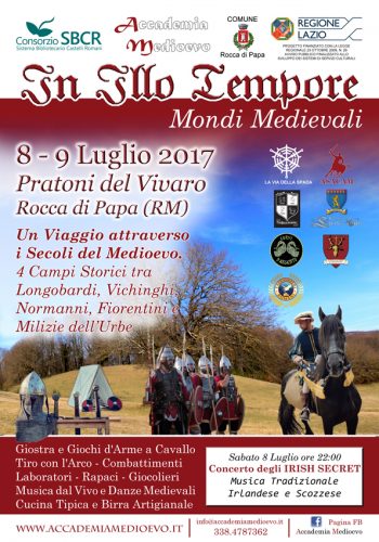 La manifestazione, realizzata dall’Associazione Accademia Medioevo in partnership con il Consorzio per il Sistema Bibliotecario dei Castelli Romani e il Comune di Rocca di Papa, con la collaborazione della Fondazione Federigo Caprilli, si inserisce nell’ambito del circuito Viaggio nel tempo, serie di eventi di riscoperta del patrimonio storico locale curati dal Consorzio SBCR e finanziati dalla Regione Lazio nell’ambito del progetto “Biblioteche in Coworking”.