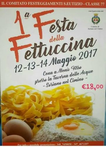 Novità di quest’anno la Festa della Fettuccina, ospitata nella Taverna delle Acque in via Innocenzo VIII ed ideata per celebrare la tradizione domenicale della pasta fatta in casa che ancora si mantiene viva in tutti i paesi della provincia viterbese. In menù, oltre alle classiche fettuccine al ragù anche quelle con ragù bianco, arista di maiale o salsicce, patatine o insalata, dolce ed acqua per un totale di 18 euro. La Taverna spalanca le porte agli appassionati della pasta fresca venerdì e sabato alle 20, domenica sia a pranzo che a cena.