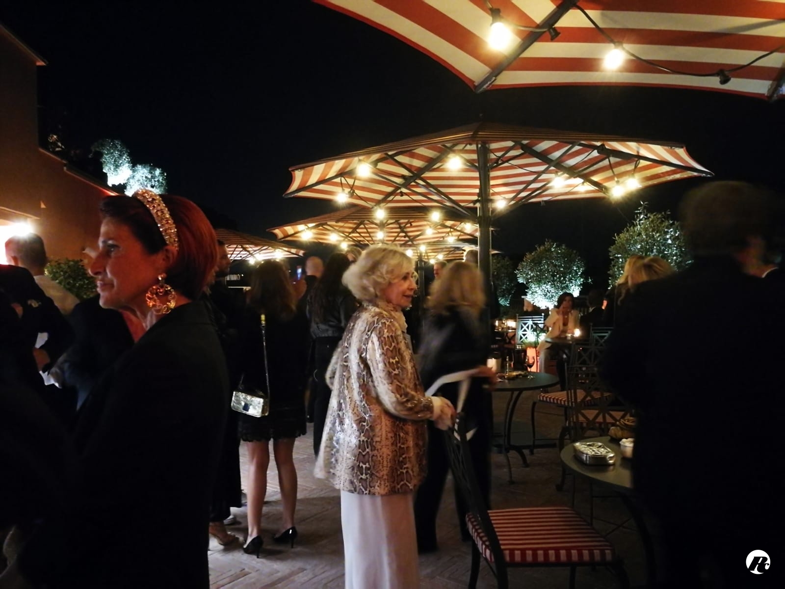 Gli incredibili terrazzi e terrazzini recuperati durante la ristrutturazione attentissima e sontuosa curata dall’ architetto e designer di interni Tommaso Ziffer e da Olga Polizzi sono stati il focus dell’andare e venire degli ospiti. Angoli inattesi, raccolti e romantici alcuni, più ampi e conviviali altri, collegati da scale e scalette, diventano flash improvvisi su vari scorci della Capitale.