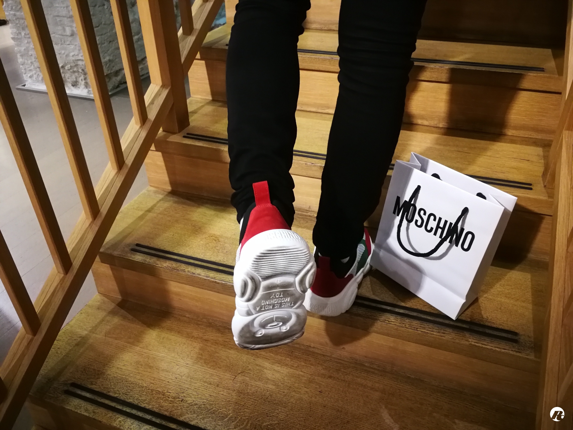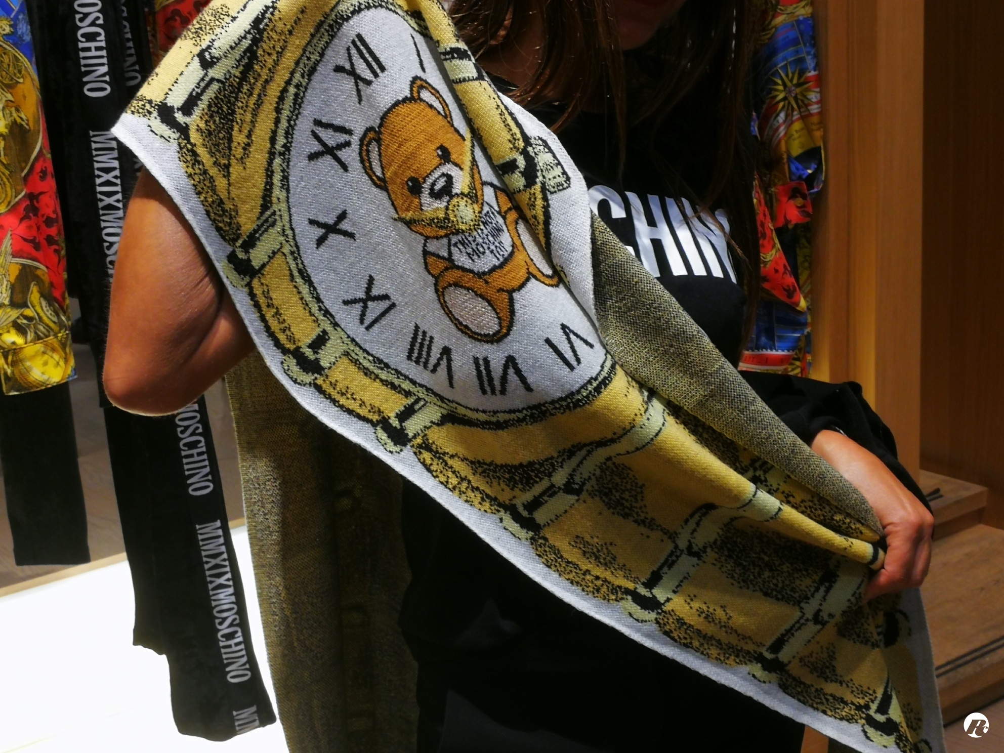 Già di per sè l’inventiva di Jeremy Scott ti lancia in un mondo immaginifico di colori e di sorprese. Entri nelle Boutique Moschino e ti senti Alice in un universo “parallelo”.