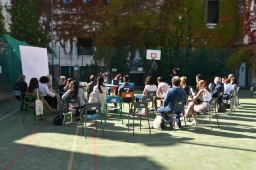Nella sede di via delle Vigne dell’istituto di istruzione superiore “Via dei Papareschi” le lezioni si spostano in giardino.